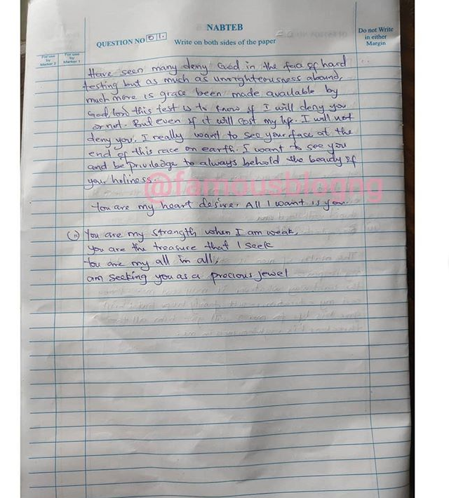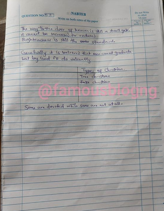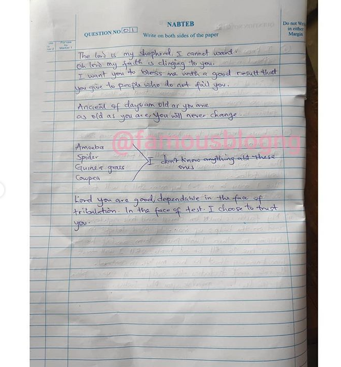 A born again Christian has shocked examinations with her answers during a biology test. According to the examiners, she refused any help saying she’s a member of the SU (Scripture Union).