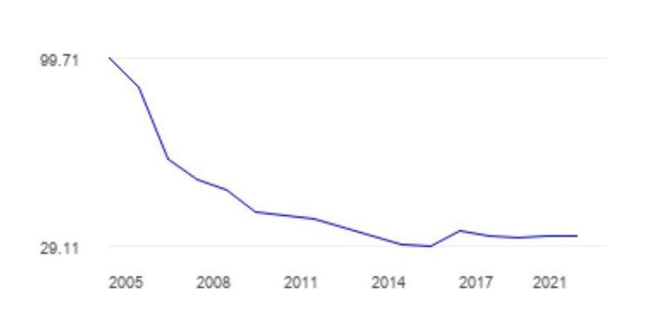 Graph for the decrease in active bank accounts in Ghana (2005 – 2021)