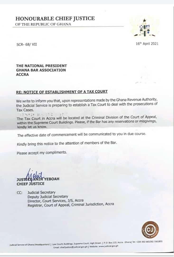 Chief Justice approves GRA’s request to set up a tax court
