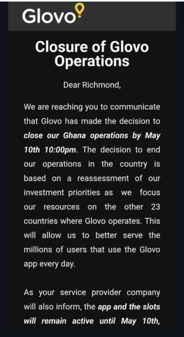 The decision to discontinue operations in Ghana underscores the competitive landscape and challenges faced by delivery service providers in emerging markets. Glovo's departure leaves a void in the local delivery ecosystem, prompting speculation about potential opportunities for other players to fill the gap.
