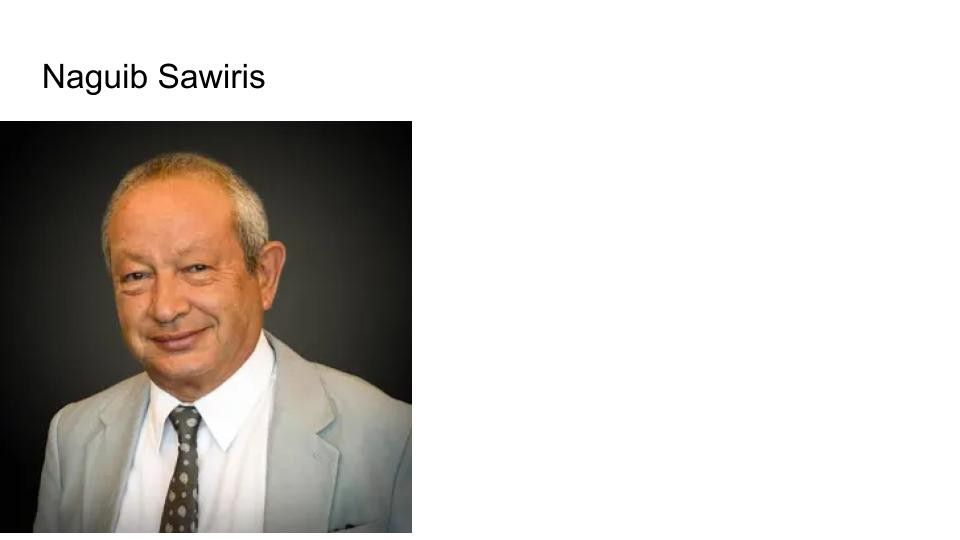 Naguib Sawiris, Nassef’s brother, has a stronghold in the telecom industry with Orascom Telecom, which was sold to Russia’s VimpelCom in 2011. A lover of luxury, Naguib is known for his flamboyant lifestyle and sharp business acumen. He now focuses on media and political ventures in Egypt.