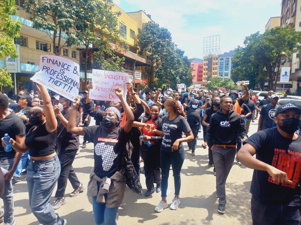Kenyans protesting tax propasals in the Finance Bill 2024