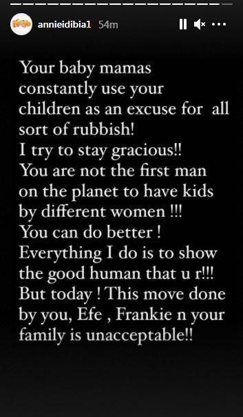 "But today, this move done by you, Efe, Frankie and your family is unacceptable."