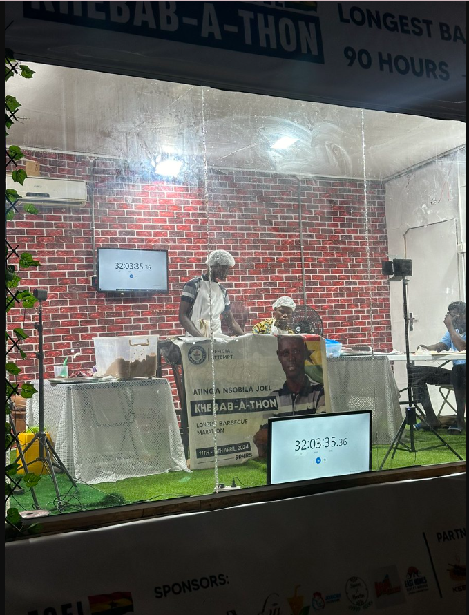 Atinga aimed to surpass the current record of 80 hours held by Jan Greeff (USA & South Africa), with a staggering 90 hours of continuous barbecue production at Accra’s Legon City Mall.