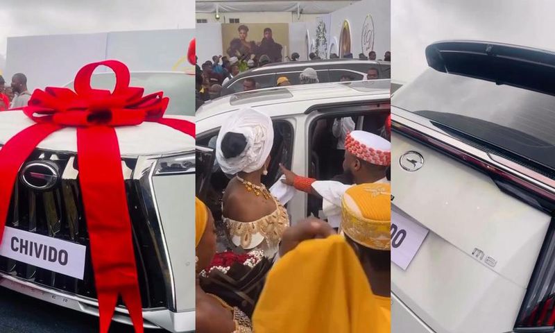 In a video from the ongoing star-studded ceremony in Lagos, the couple were presented with a brand-new white car.