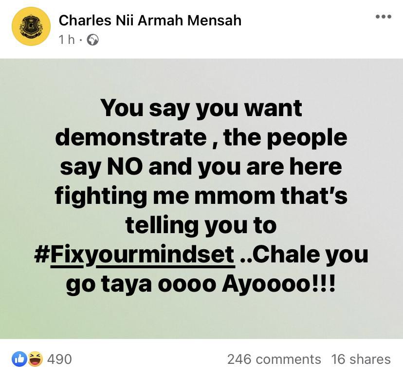 For instance, Shatta Wale said the youth should typing on social media and hit the streets but in another post, he said the demonstration would not fix the country so people should rather fix themselves.