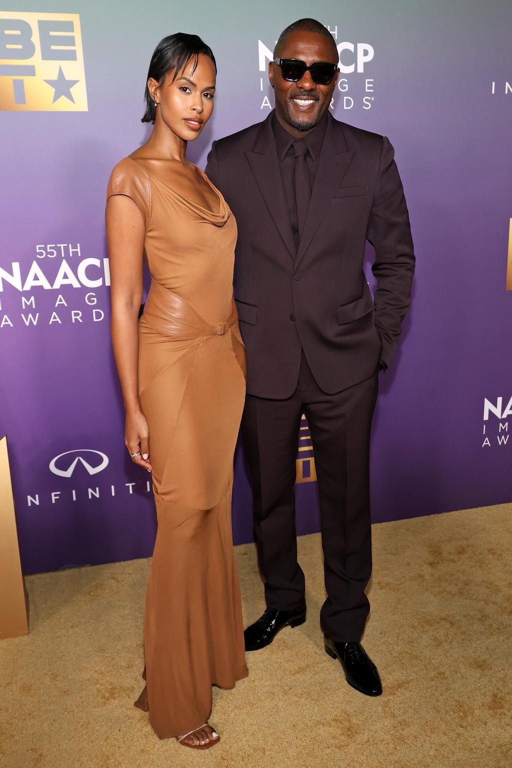 Idris Elba kept things classic with an all-black suit, while his wife, Sabrina Dhowre Elba, wore a floor-length tan dress.