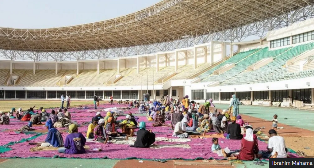 The pieces were so big that when no matches were happening, the artist rented the Tamale football stadium, where, the pieces were spread out on the ground, and hundreds of local women sewed them together.