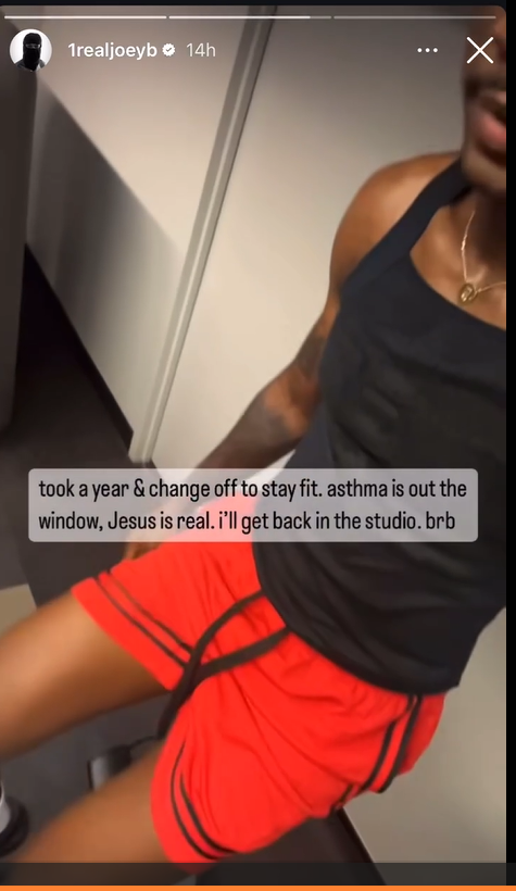 The singer shared this news in a video posted on his Instagram story while he was at the gym. "Took a year and change off to stay fit. Asthma is out the window, Jesus is real. I'll get back in the studio. brb," he wrote.