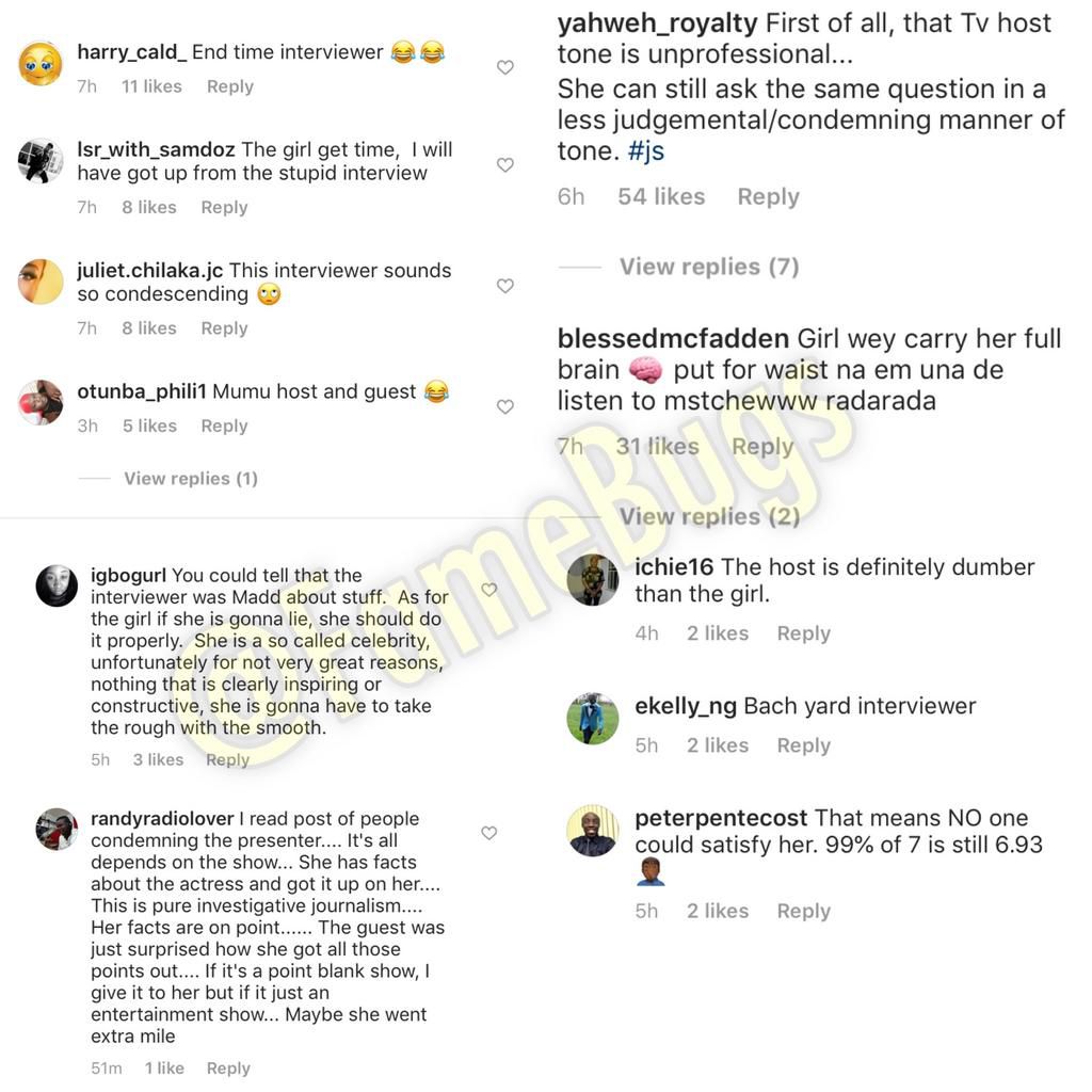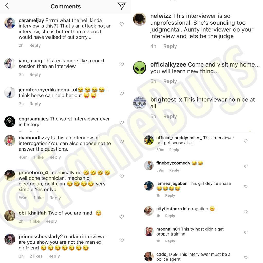 A screenshot of comments seen by pulse.com.gh shows the Nigerian social media users describing Delay’s interviewing approach as unfair and unprofessional. Others have also used unprintable words to chastise her work.