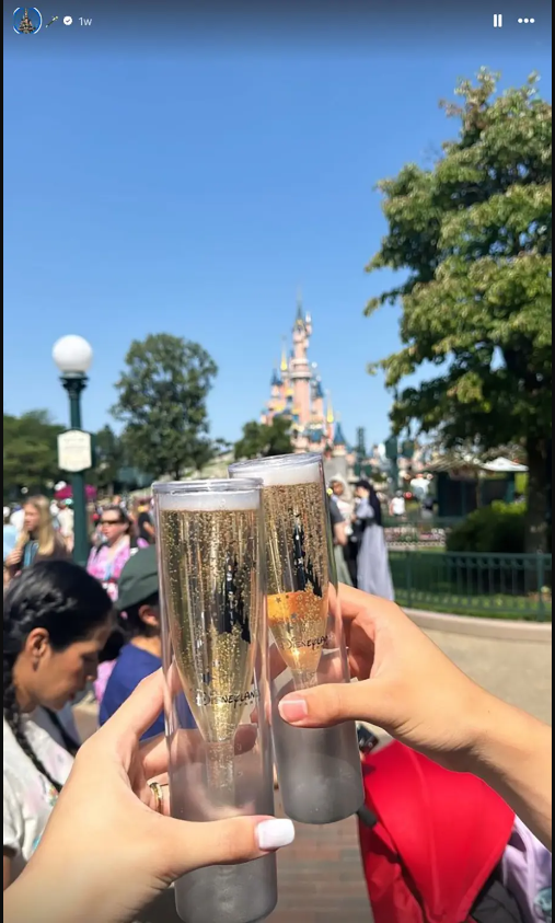 The photos, posted on July 29, showed her in Mickey Mouse ears and toasting with champagne flutes. The drinking age in France is 18.