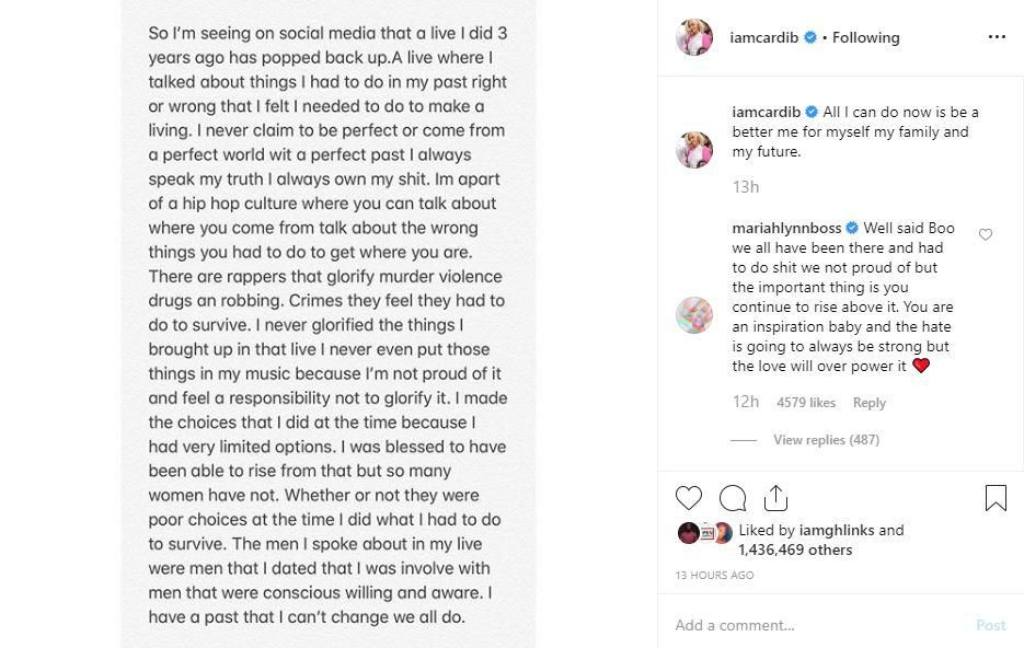 Ever since the old videos resurfaced, the “Bodak Yellow” rapper, who was a previously known stripper, mounted a defence mechanism by taking to Instagram to admit to having done such things but added that it’s her past and she regrets it.