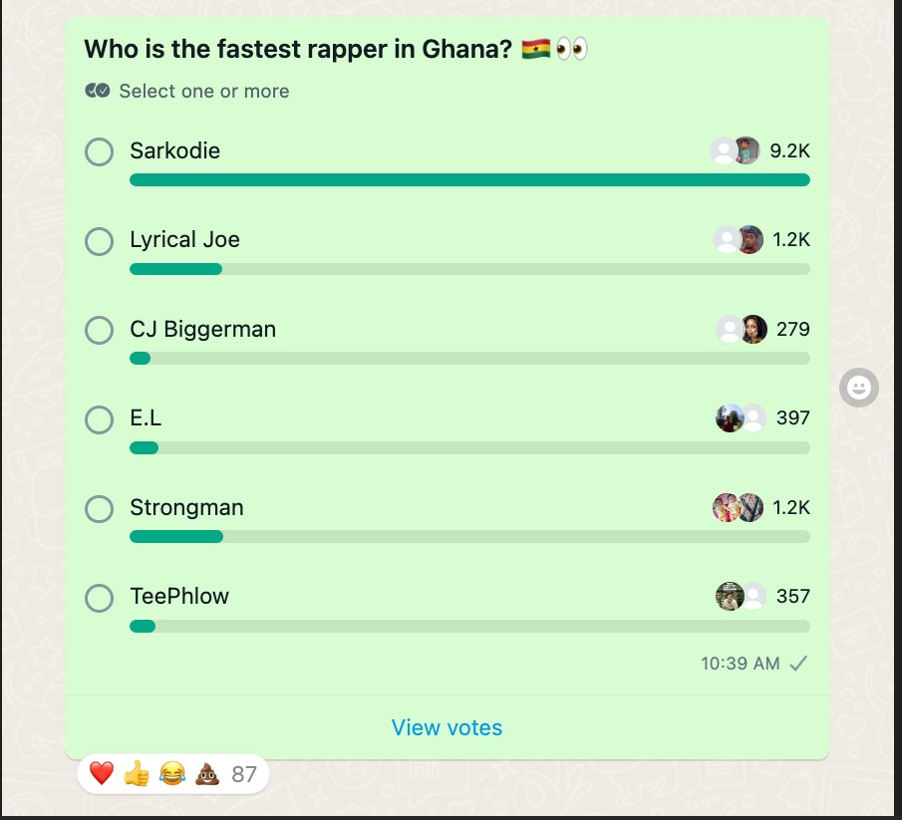 However, Sarkodie’s versatility and consistent performance have set him apart, making him the fan favourite in this poll.