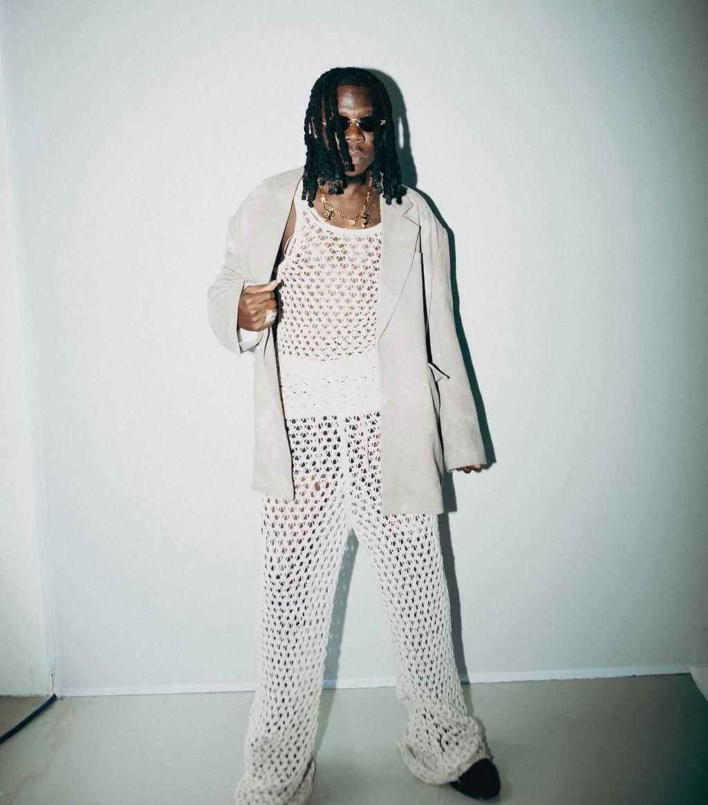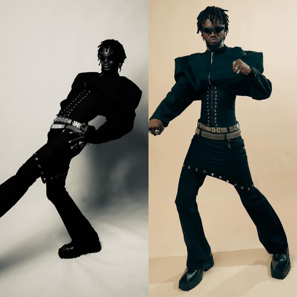 Black Sherif, a Ghanaian singer and rapper, has a distinctive fashion sense, typically laid-back and streetwear-inspired. His outfits often include jeans, t-shirts, and sneakers, alongside hats, sunglasses, and jewellery. He often channels a ‘retro’ vibe, frequently seen in bootcut jeans paired with either fitted long-sleeves or t-shirts, complemented by boots or sneakers.