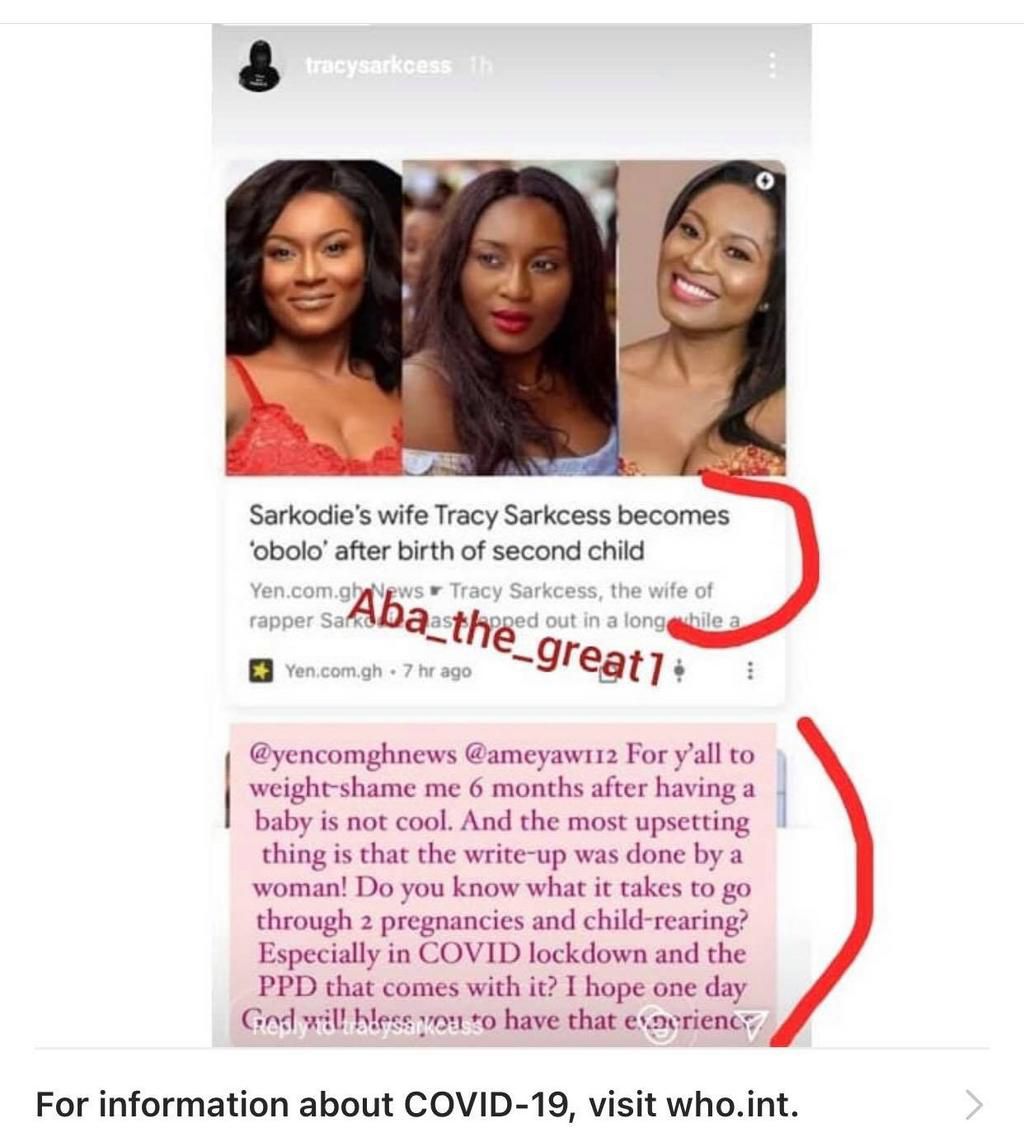 According to Sarkodie's wife, the reports comes of body-shamming as she took to her Instastory to address the publication by a news portal in Ghana. "For y’all to weight-shame me 6 months after having a baby is not cool," she wrote.