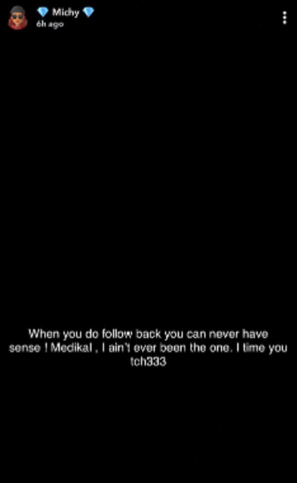 Furiated Michy confronted Medikal about claims that Shatta Wale was a responsible father who lived up to expectations
