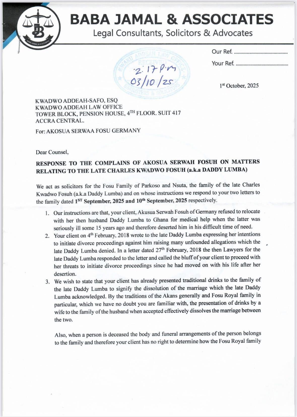 The family’s legal representatives also responded to claims made by Akosua Serwah Fosuh, a woman based in Germany who has identified herself as the musician’s legitimate wife. According to the family, Akosua Serwah forfeited her marital rights after allegedly abandoning Daddy Lumba during his illness about fifteen (15) years ago.