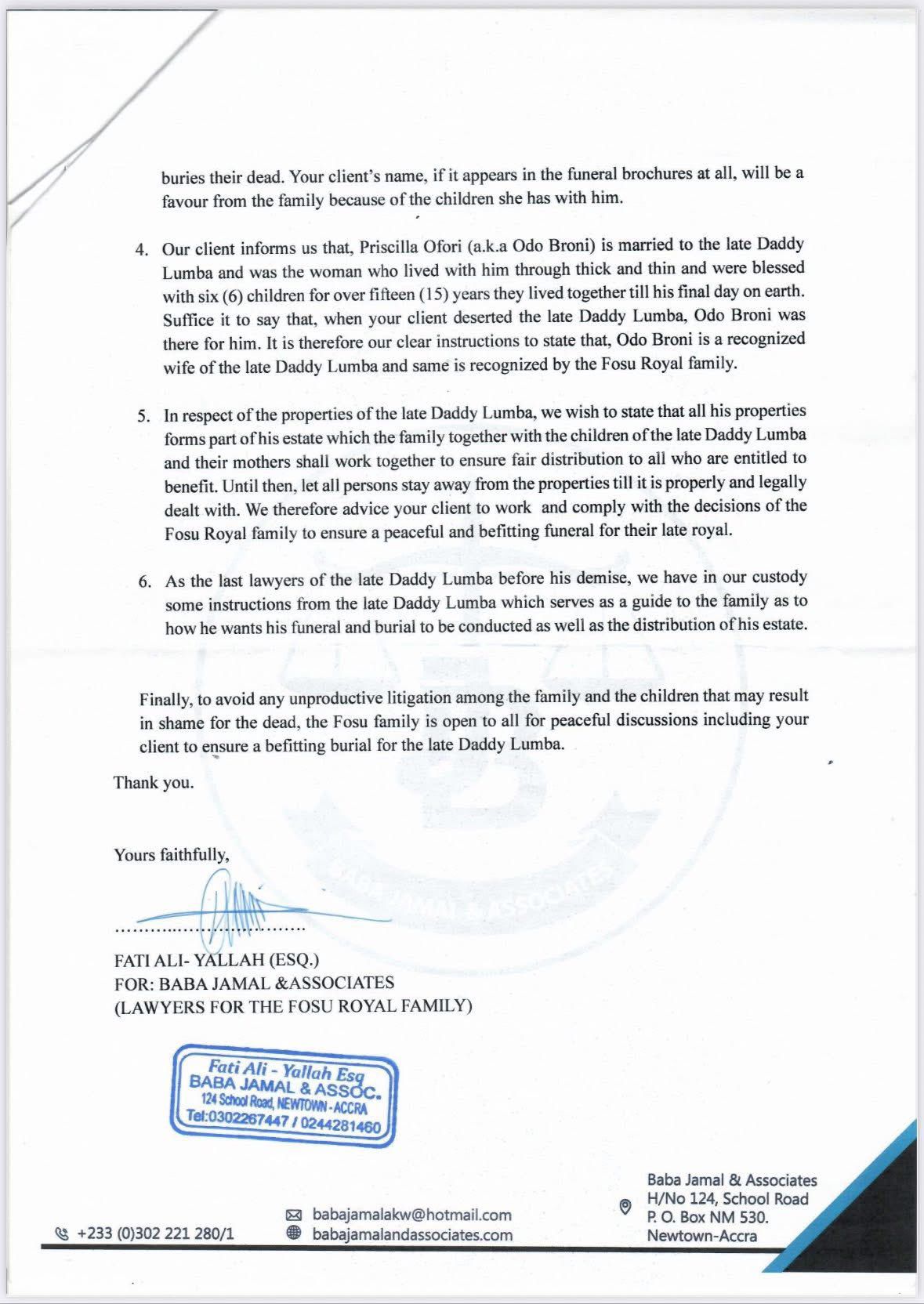 Our client informs us that Priscilla Ofori (a.k.a Odo Broni) is married to the late Daddy Lumba and was the woman who lived with him through thick and thin and were blessed with six (6) children for over fifteen (15) years they lived together till his final day on earth.