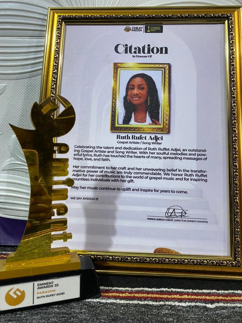 In 2022, at the maiden edition of the Eminent Awards, Ruth Adjei beat all odds to win the 'Discovery of the Year'.