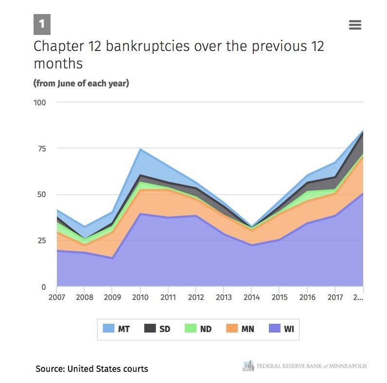 And in Wisconsin, where about 60% of all farm bankruptcies were filed, there are more small-sized farms that tend to be particularly vulnerable to price changes.