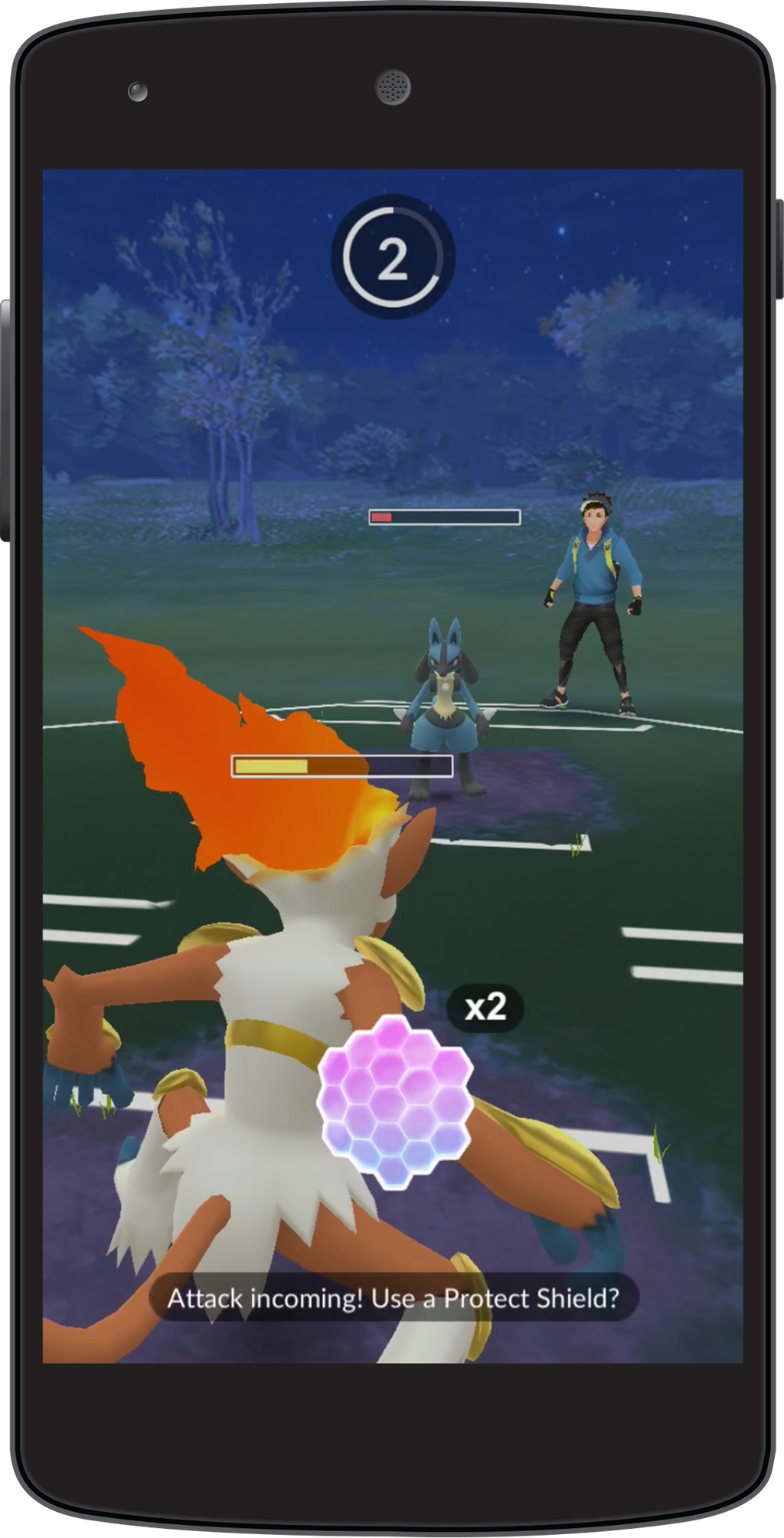 This leads to another new mechanic: Meet the "Protect Shield." When an opposing Pokémon launches a charged attack your way, you have the option to either absorb the hit, or put up one of your limited number of Protect Shields.