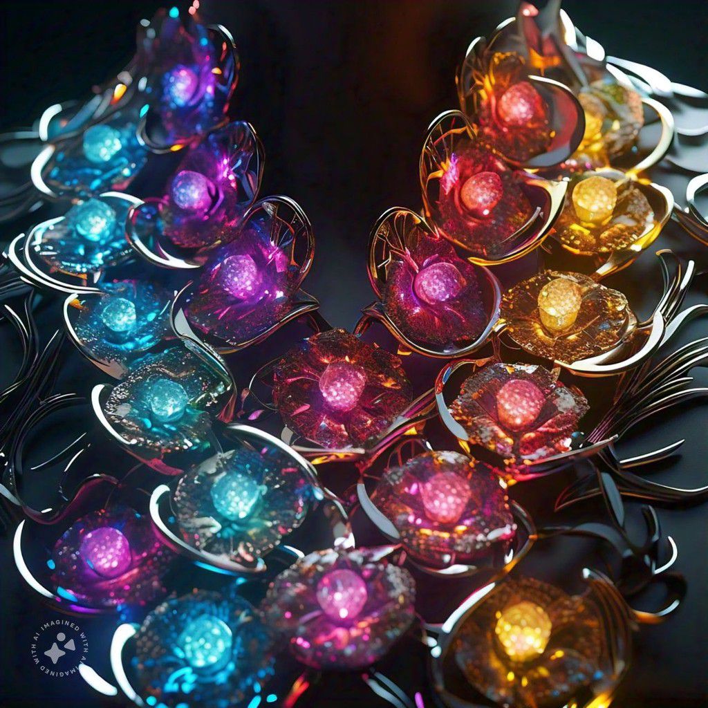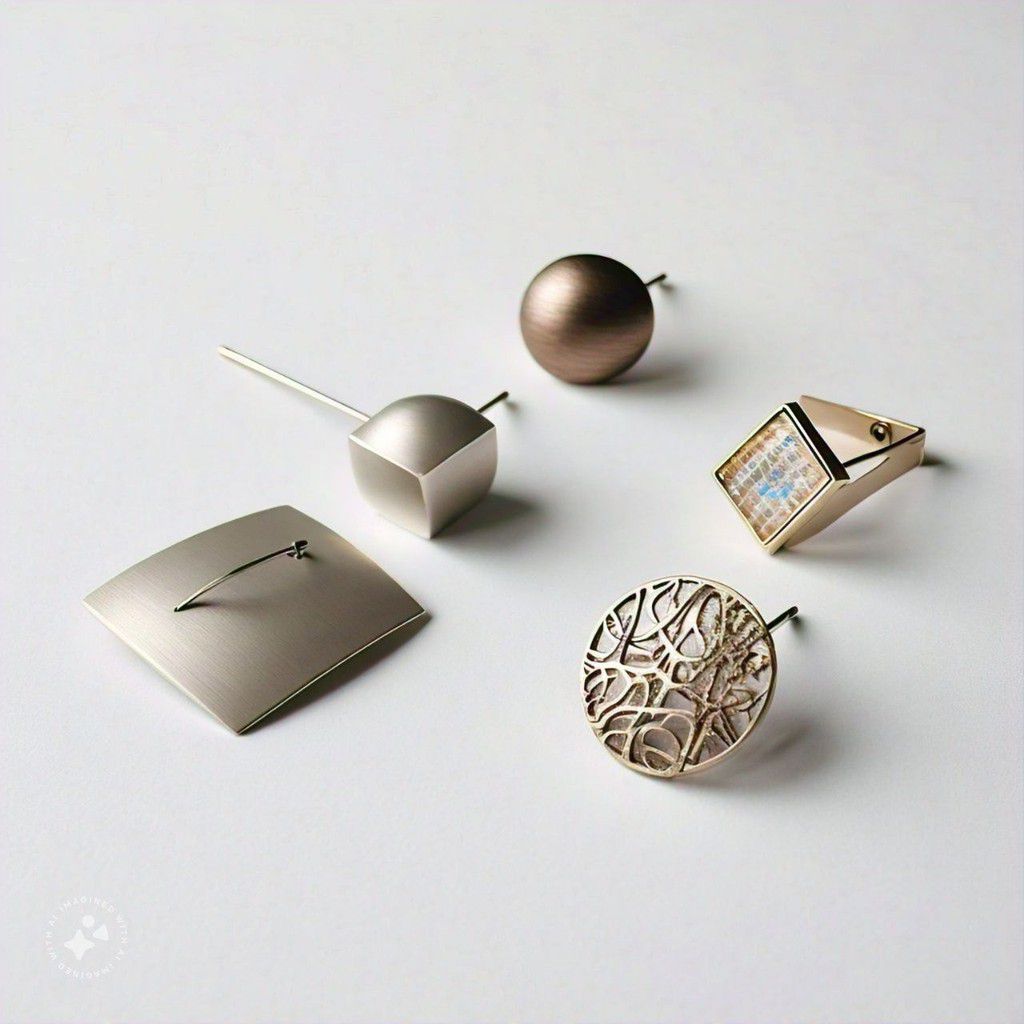 Metallic brooches are a simple yet striking accessory that can instantly add a futuristic touch to any outfit. Whether pinned on a dress, coat, or even trousers, these brooches, often designed in geometric or abstract shapes, offer a modern, AI-inspired flair. Their shiny surfaces and sleek designs make them a perfect addition for those looking to enhance their outfit with minimal effort, whilst still staying on theme with "Futuristic Fashion: AI Glamour."