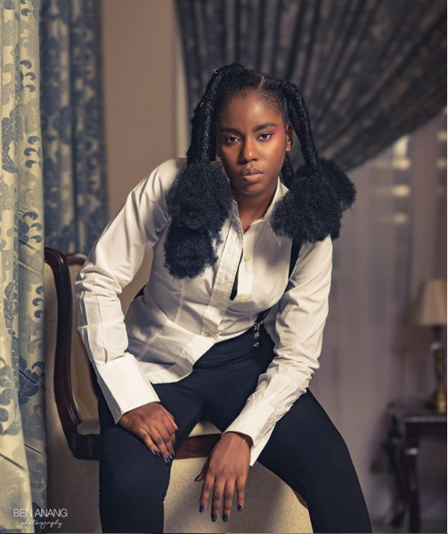 We just love how she does this hairstyle. A simple all-back cornrow with a little extension always makes her look unique and stunning.