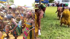 The dance begins with Banyinyi, a short and solemn introductory prayer to the gods and ancestors, setting the tone for the performance.