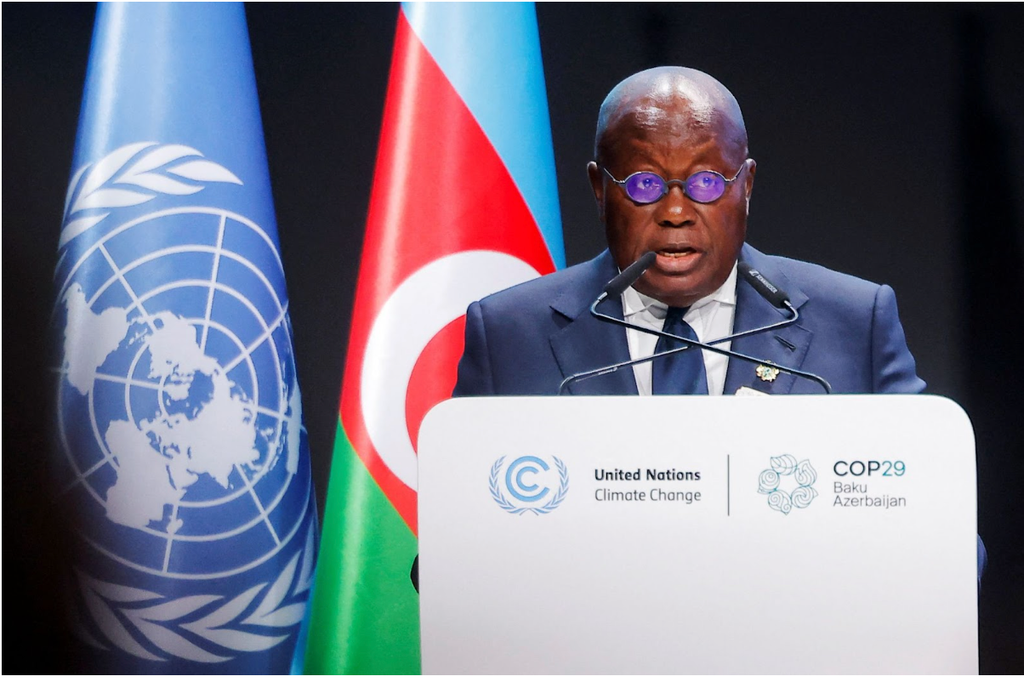 Ghana's President Nana Akufo-Addo delivers a statement during the United Nations climate change conference COP29, in Baku, Azerbaijan. REUTERS/Maxim Shemetov.