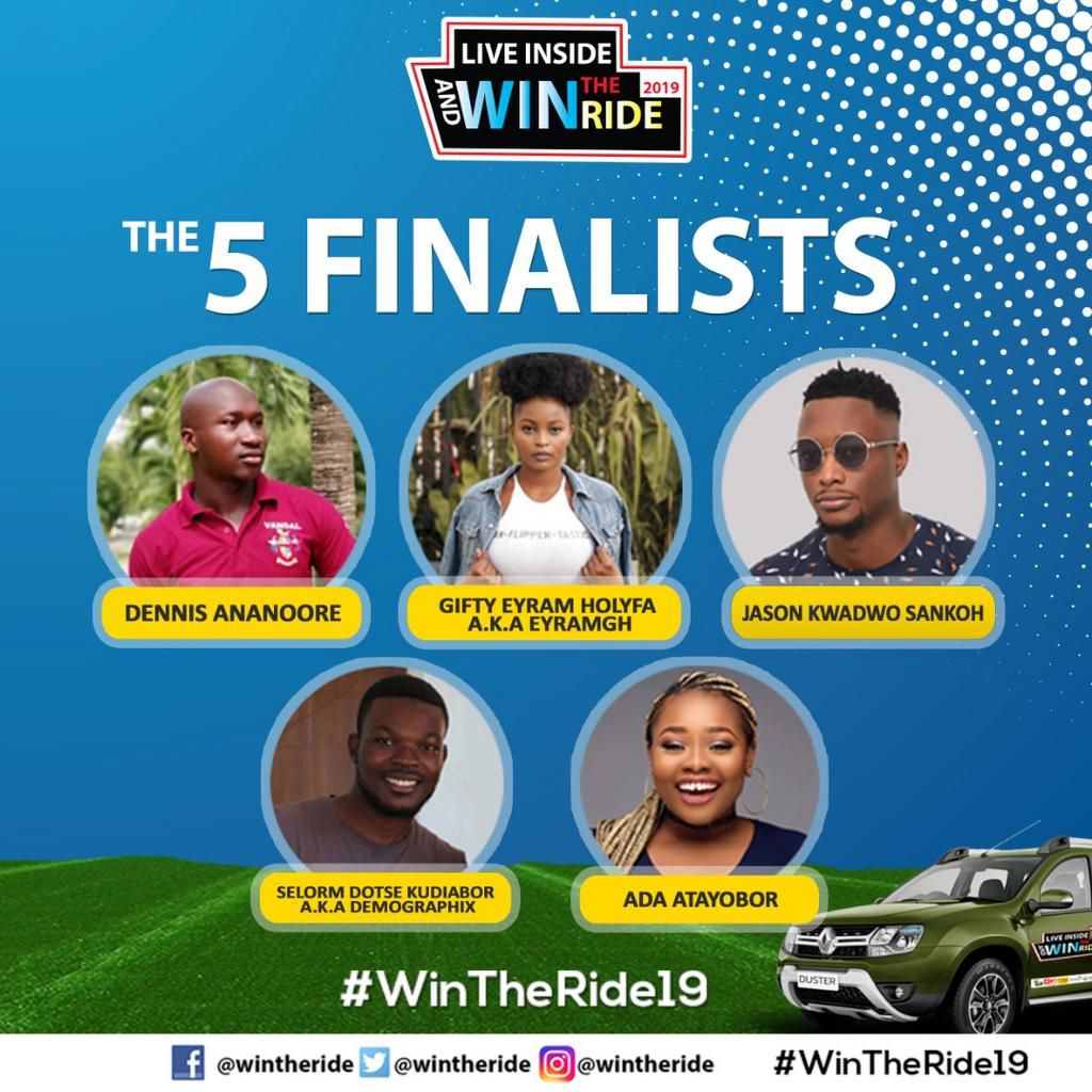 The five, Dennis Ananoore, Gifty Eyram Holyfa, Jason Kwadwo Sankoh, Selorm Dotse Kudiabor and Ada Atayobor, were unveiled as the contestants who came tops after the voting process at the Announcement Party for the Live Inside and Win the Ride on June 7 at the Food Court, Accra Mall.