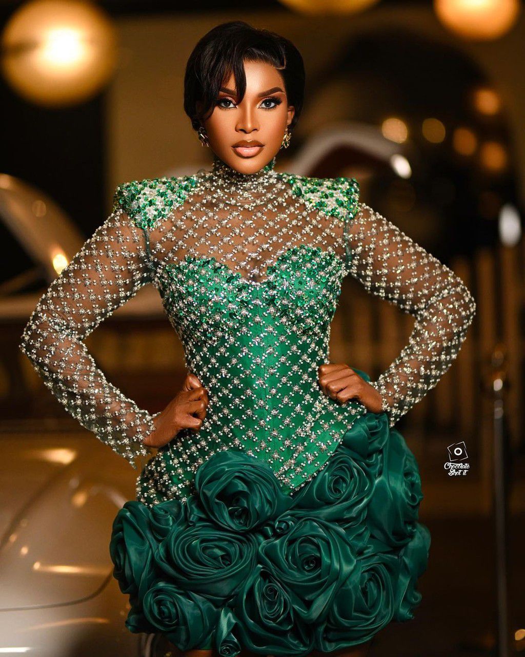 3. Benedicta Gafah: Benedicta dazzled in a green see-through gown with a skirt adorned with silk-made flowers, adding a unique and sophisticated twist to her glamorous look.