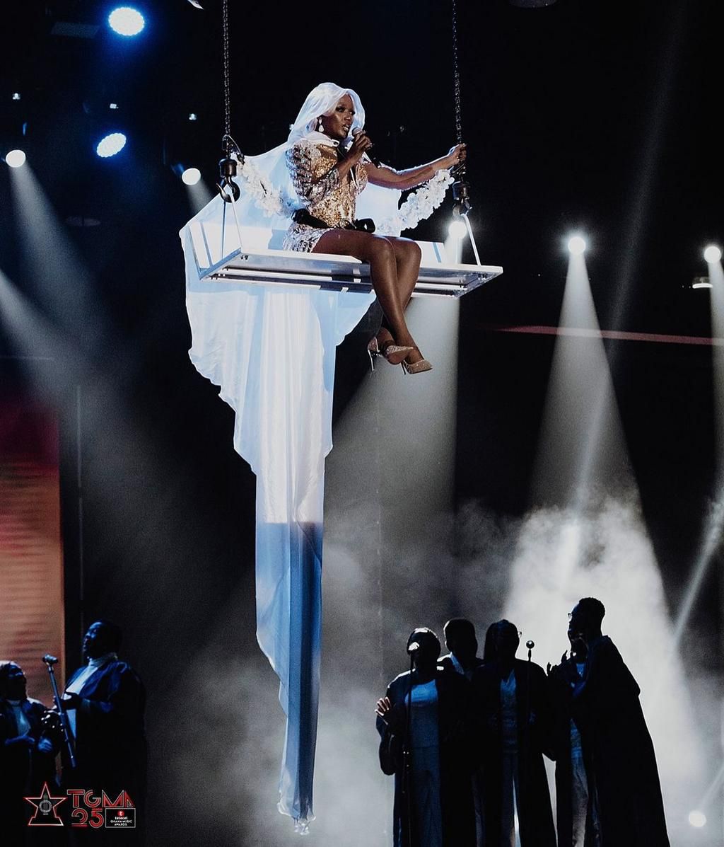 Mzbel shone literally from head to toe in an all-silver outfit that sparkled brilliantly under the red carpet lights. Her look was a refreshing divergence from the gold theme, proving that silver can shine just as brightly on such a glamorous night.