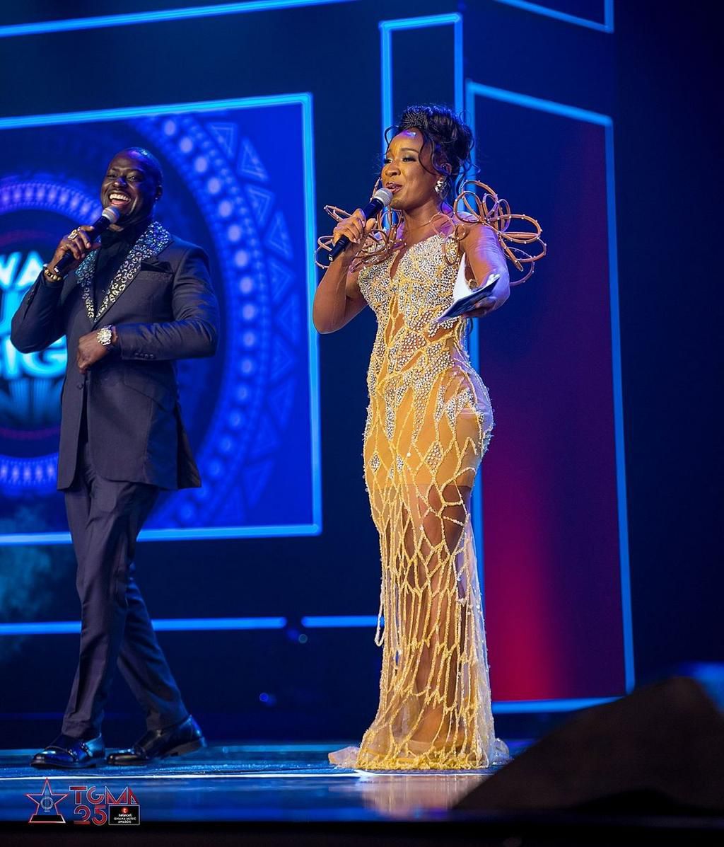 Efia Odo shined in a spectacular golden gown that was both chic and glamorous. The gown's sleek design and shimmering fabric ensured that she not only stood out but also reflected the grandeur and elegance of the night.