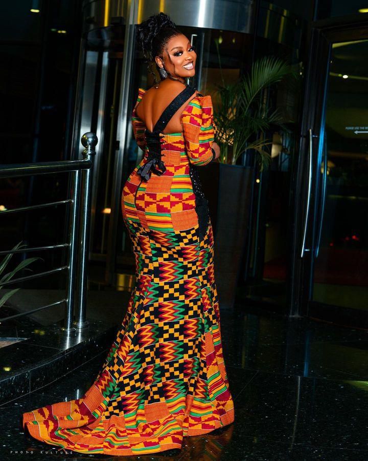 Of course, Jackie wouldn't disappoint with her Ghanaian heritage. She is definitely proud of her Ghanaian roots and she rocked the Ghanaian Kente with class. Already known for her classy outfits and a great sense of fashion, Jackie complemented her outfit with flawless makeup and a stunning wrapped hairstyle.