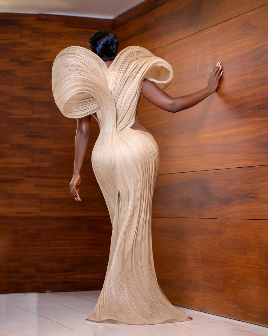 READ MORE: Golden girl Moesha Boduong has all the fashion tips for a birthday photoshoot Her golden brown dress was complemented by a sleek hairstyle and spot on makeup, slaying on the red carpet like the norm that has been over the years.