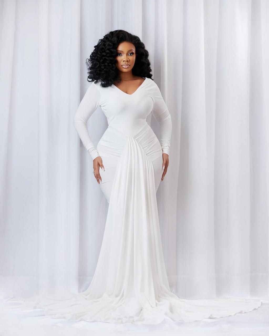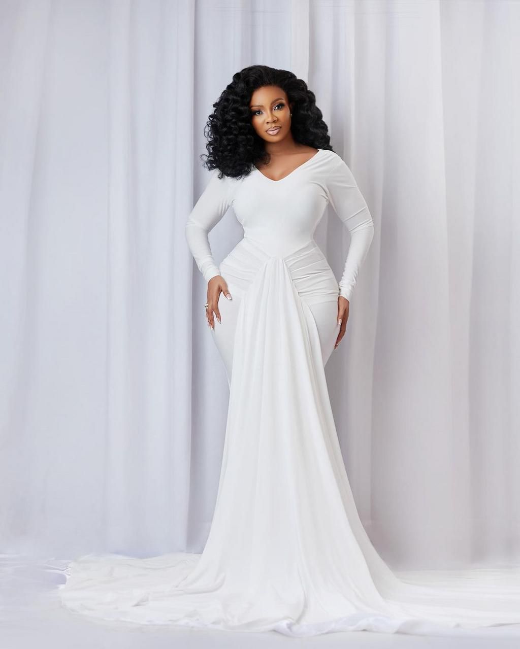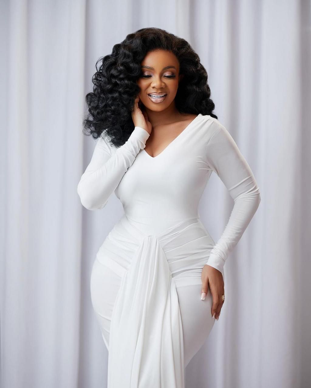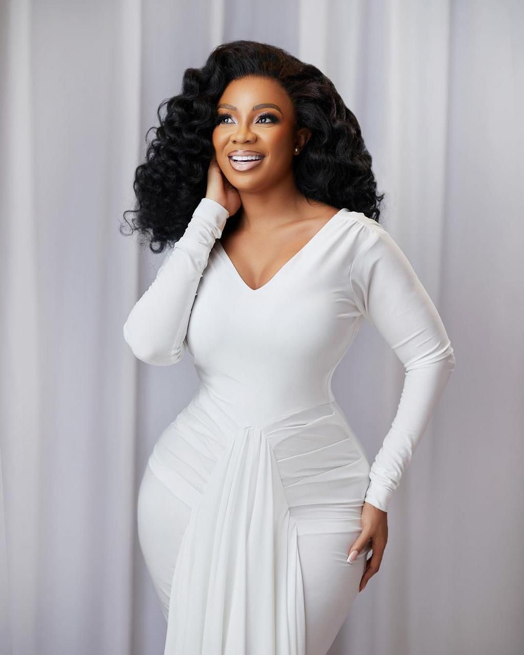 Ghanaian news broadcaster Serwaa Amihere celebrates her birthday with beautiful photos of her in a white straight dress.