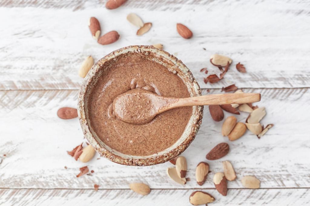 9) Healthy source of fat: almond butter Add a serving of almond butter to your morning oatmeal for healthy fat and some Vitamin E, an antioxidant that protects cells from damage. You'll also get some 3 grams of fiber and 7 grams of protein in two tablespoons , both of which help keep you full for longer. MAIKA 777 - Getty Images