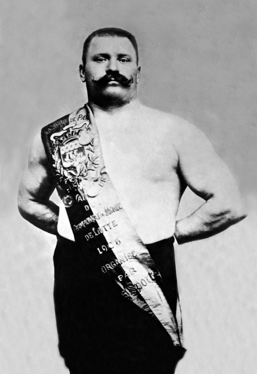 George Hackenschmidt, 1911 In this photo, Hackenschmidt performs a bench press in front of a crowd in Chicago. Chicago History Museum/Getty Images