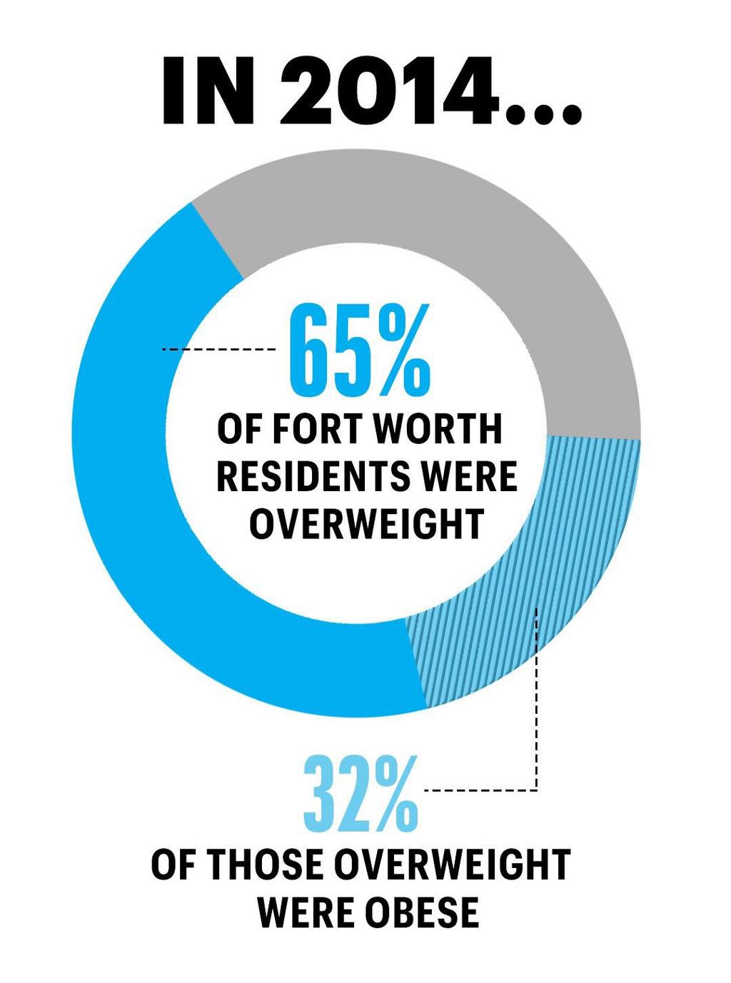 Fort Worth had other problems, too. The Alliance for Biking & Walking ranked it dead last among the countrys 52 most populous cities for commuter walking and bikingand even then one in five people killed in traffic accidents was a pedestrian. The body mass index of its residents beat the national averages, with 65 percent of people overweight and 32 percent of that group qualifying as obese. Residents still smoked in restaurants and even parks, which ranked near the bottom third of the Trust for Public Lands ParkScore list.