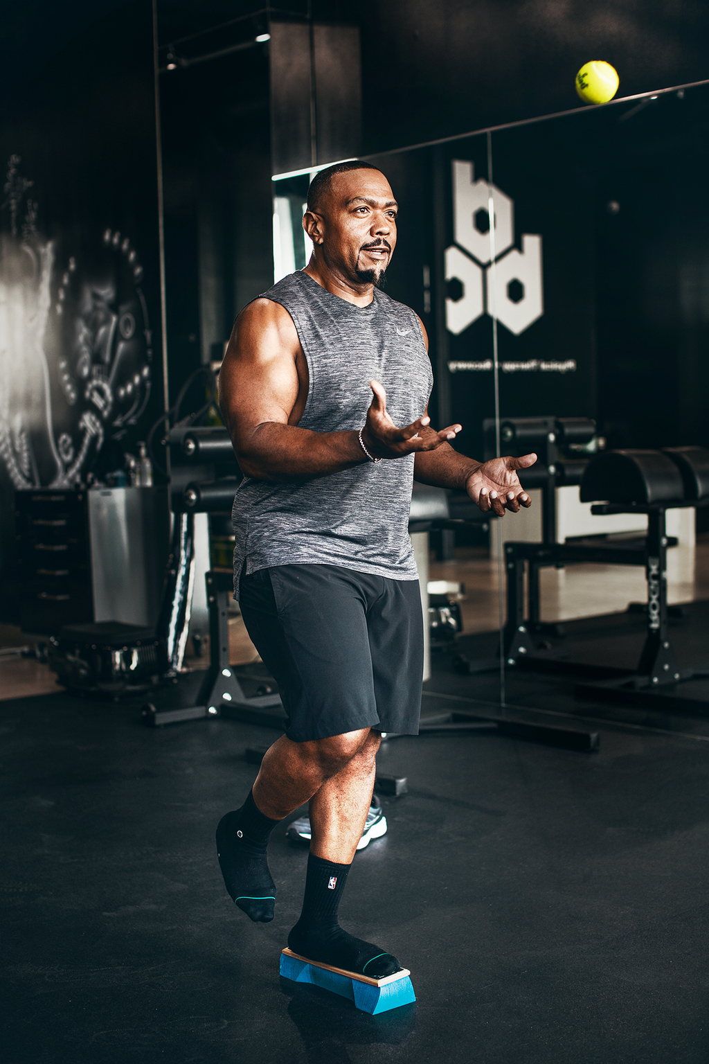For all the progress Mosley had made at Punch, DBC co-owner David Alexander still considered him a work in progress. His feet and ankles were not working right, Alexander says, and he came in grossly overweight, about 260 pounds. So Alexander designed a program around seven general movement patterns: squat, lunge, hinge, push, pull, twist, and gait.