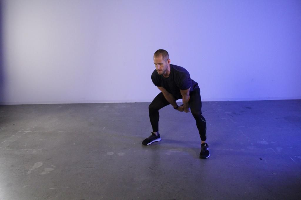 Eb says: Exhale forcefully as you power the kettlebell out of the hole. Remember: this is an explosive motion. Exhaling will help you channel that power.