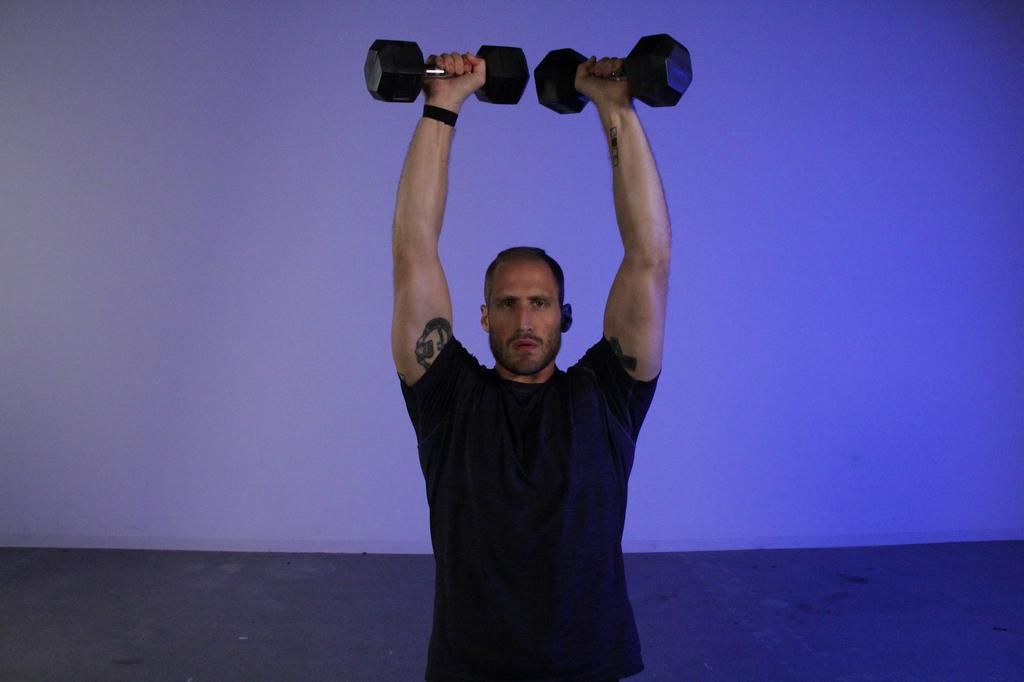 Why? Because it's going to keep you from one of the key flaws in all shoulder presses, a tendency to shift stress to the lower back. Normally, when we shoulder press, especially as we work with larger weights, we arch either from the lower back or through the mid-back, especially if we lack true overhead mobility. That lets us move more weight.