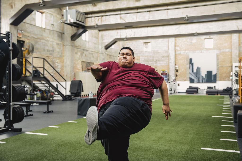 Four years into his journey, and after one year working with Carson, Maynor has lost nearly 300 pounds and now weighs 414. He has 215 pounds to go. The weight fell off quickly at the start, but its slower now. Carson says they have adjusted their weekly goals to focus more on performance than on weight loss. In fact, they no longer do weekly weigh-ins. Were looking for strength gains in the deadlift and squat, says Carson. If we hit the strength goals, well get there with the weight, because muscle burns more calories than fat. His metabolism will do the work.