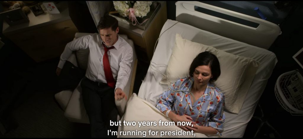 While the character and O'Rourke have nothing in common at all in this regard (O'Rourke has been happily married to Amy Sanders for 15 years), scenes of Tino speaking to his comatose wife do further establish the link between the two. At one point, Tino whispers to his unconscious wife that "I mean, Senate, it's boring as shit. But two years from now, I'm running for president, so if you wouldn't mind moving this process along..." A first-term senator looking ahead to a presidential race. The pieces certainly fit.