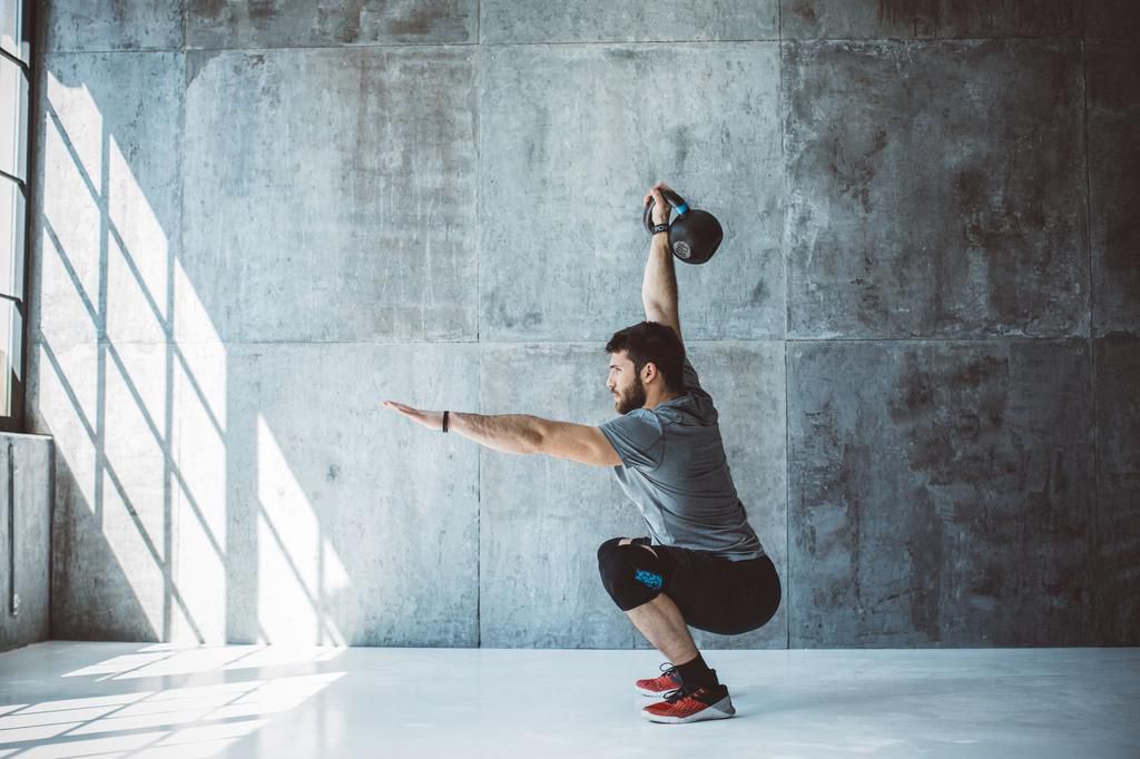 Young man Practicing Walking lunge with Kettle bell