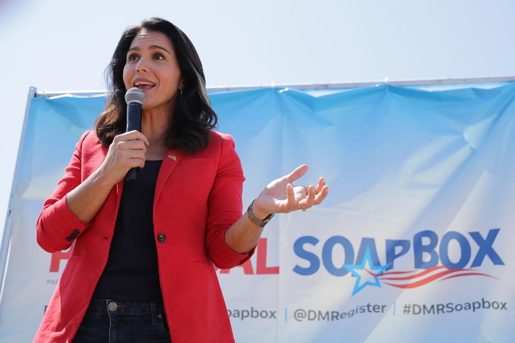 5) Tulsi Gabbard Gabbard, also a combat veteran, is making a hard play for the CrossFit vote. The 38-year-old Hawaii congresswoman and Army National Guard major tweets out videos of her grueling exercise routines. One showed off a military-style workout of 25 exercises using just a bench; she cycled through reverse crunches, forward lunges, and jumping jacks. Another video shows Gabbard lifting weights and doing burpees. On more leisurely days, she enjoys surfing. She told a fellow surfer at a town hall , Its magic, man! Its magic. Its hard to describe. The renewal you get from the ocean and across Mother Nature keeps us centered and connected to our planet. Chip Somodevilla - Getty Images
