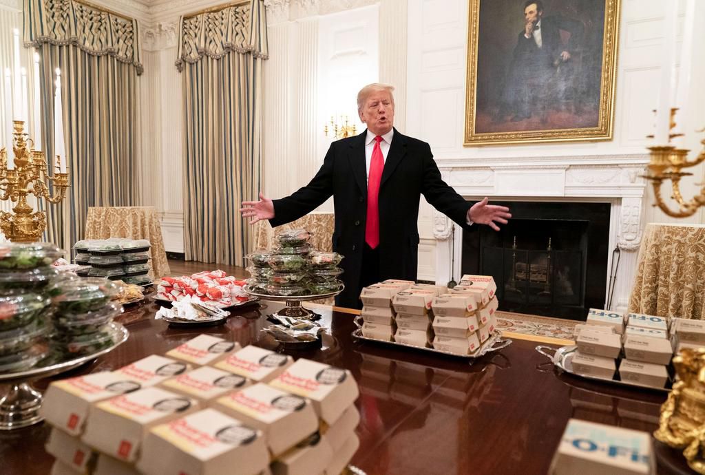 11) Donald Trump Donald Trump, 73 and unequivocally the healthiest individual ever elected to the presidency, (if you believe his doctor's note) avoids rigorous exercise because he apparently thinks it's actually harmful. All my friends who work out all the time, theyre going for knee replacements, hip replacementstheyre a disaster, Trump told The New York Times Magazine in 2015. He has also stated his conviction that the human body contains a finite amount of energy and working out only drains it. An owner of several golf courses, Trump is in fact an avid golfer, so much so that he inspired a Wikipedia page entitled Donald Trump and golf and the website Trump Golf Count , which states that the president has played golf 224 days of his almost-three-year presidency. Trump also has well documented love of fast food chains and considers the reputed cleanliness of restaurants above calorie counts when selecting meals. Pool - Getty Images