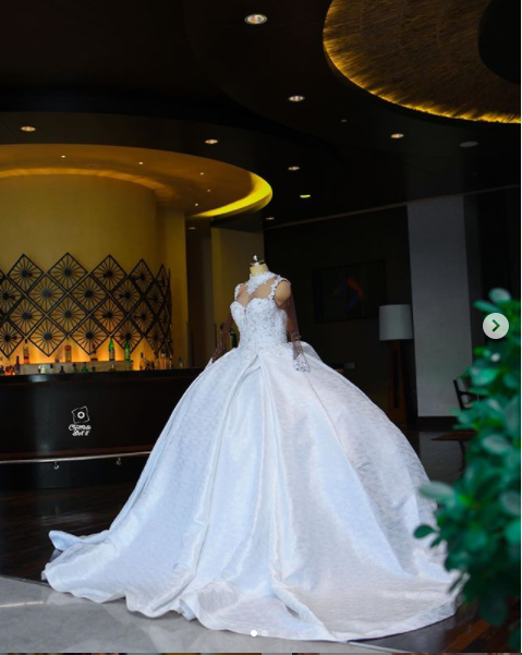 They both changed their outfits for the wedding to another multi-million apparel for their wedding reception and dinner at the Kempinski Hotel Gold Coast City Accra.