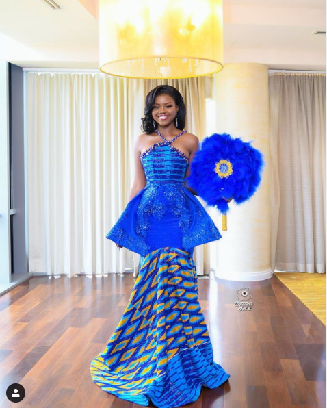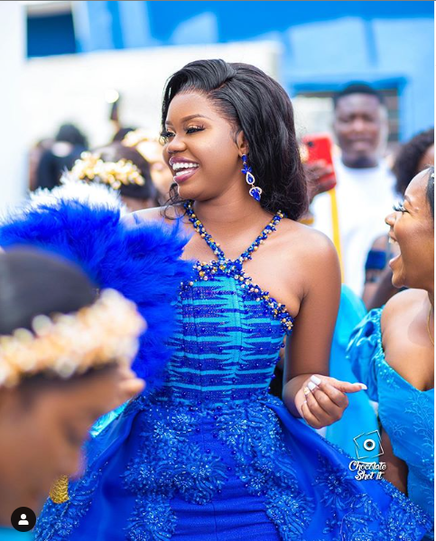 The bride, Portia Brenya looked stunning in the blue Kente combo apparel. Her elegant hairstyle and flawless yet expensive makeup were just on point making her the centre of attraction throughout the ceremony.