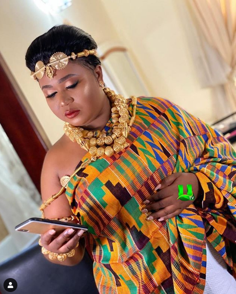 Unlike the usual Kaba and slit outfit wore by most celebrities for the traditional wedding, Xandy went the kente wrapped way looking elegant and like a queen mother.